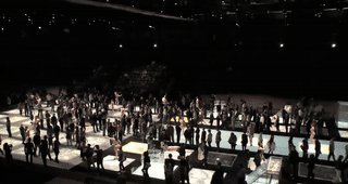 我请剧组做《布兰诗歌》的时候是比较棘手的。它每首诗都有两分半钟左右,所以需要100多人的合唱队和100多人的乐队,四个主歌手,以及几十个舞者。我把自己的个人情感和世界观放在了里面,比如我把对东方春天的美好、爱的美好、生命的美好甚是对放纵的认识和理解都投入了进去,把《布兰诗歌》变成了一个全新的作品。西方人看到的时候吓了一跳!他们没想到这个曾经在世界上影响力这么大如今却没有被重视的东西,能够以这样的方式被重新呈现出来。创作《布兰诗歌》的时候,我首先了解了西方中世纪到文艺复兴时期的宗教,他们的社会价值观和种族之间的关系、教育的成长、以及文学和美学观。了解到《布兰诗歌》这样的文字为什么会出现和被认同?为什么他们有兴趣去写这种文字?为什么在德国创作了这种音乐而且备受欢迎?同时作为一个中国人,我融合了我对诗歌的爱好以及对生命小插曲的情绪,用了很东方式的运作方法去解读它。我的《布兰诗歌》在视觉上有很多东方文化融汇在其中,比如唐诗宋词和水的韵律,我把这些东西和原本的《布兰诗歌》进行沟通,放在一起再呈现出来。西方人完全没有想到《布兰诗歌》可以有这样的情绪!(我的《布兰诗歌》是)我的世界观形成后再进行对话,呈现全新的演绎,而不是跟随他们走回中世纪的《布兰诗歌》。对我来说,那些没有署名又不能公开的诗,就像八十年代的校园歌曲,都是很单纯的情绪,有一种对美好的向往和追求在里面,是有生命力、意义非凡的产物。